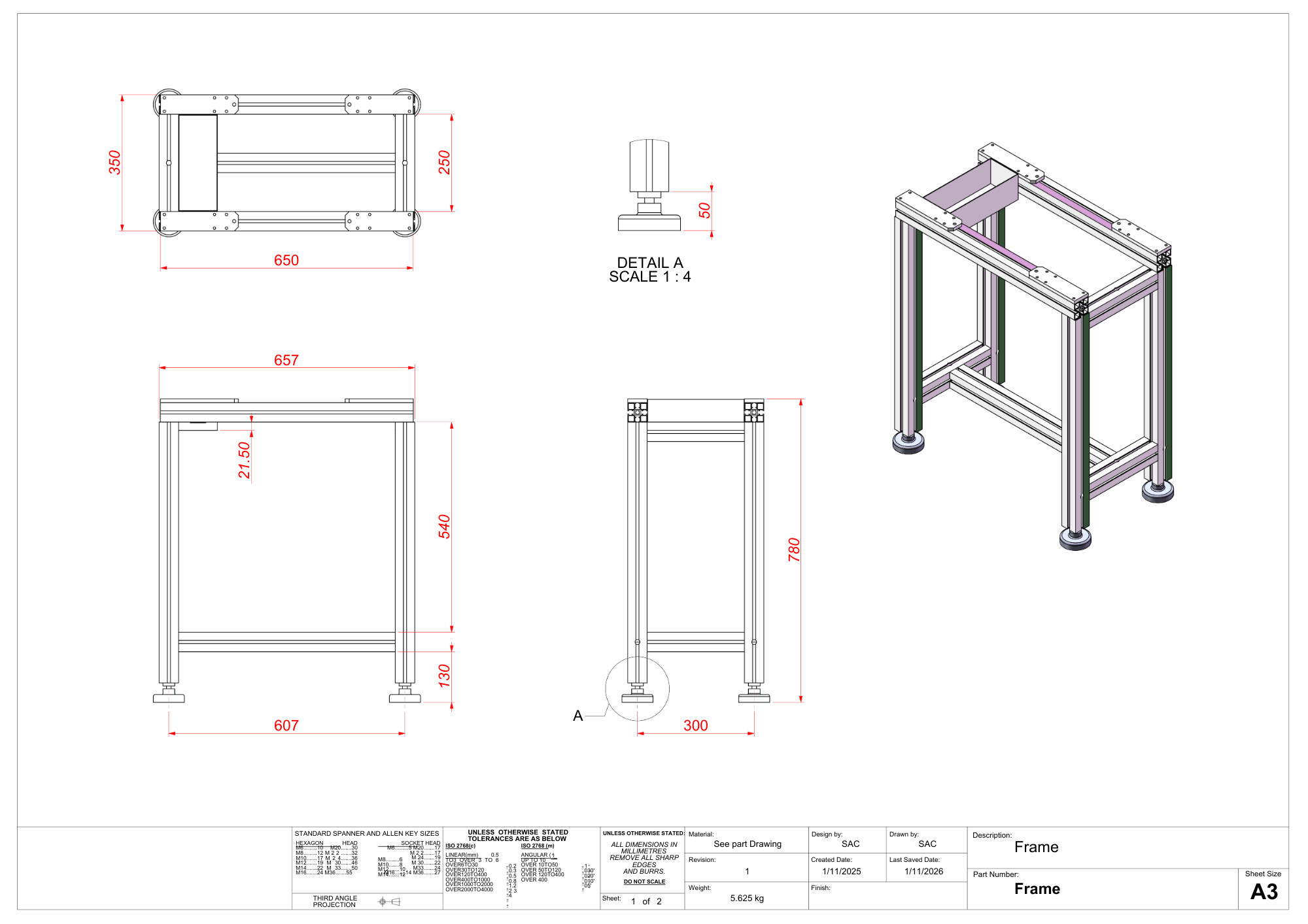bill of materials for machining and fabrication.